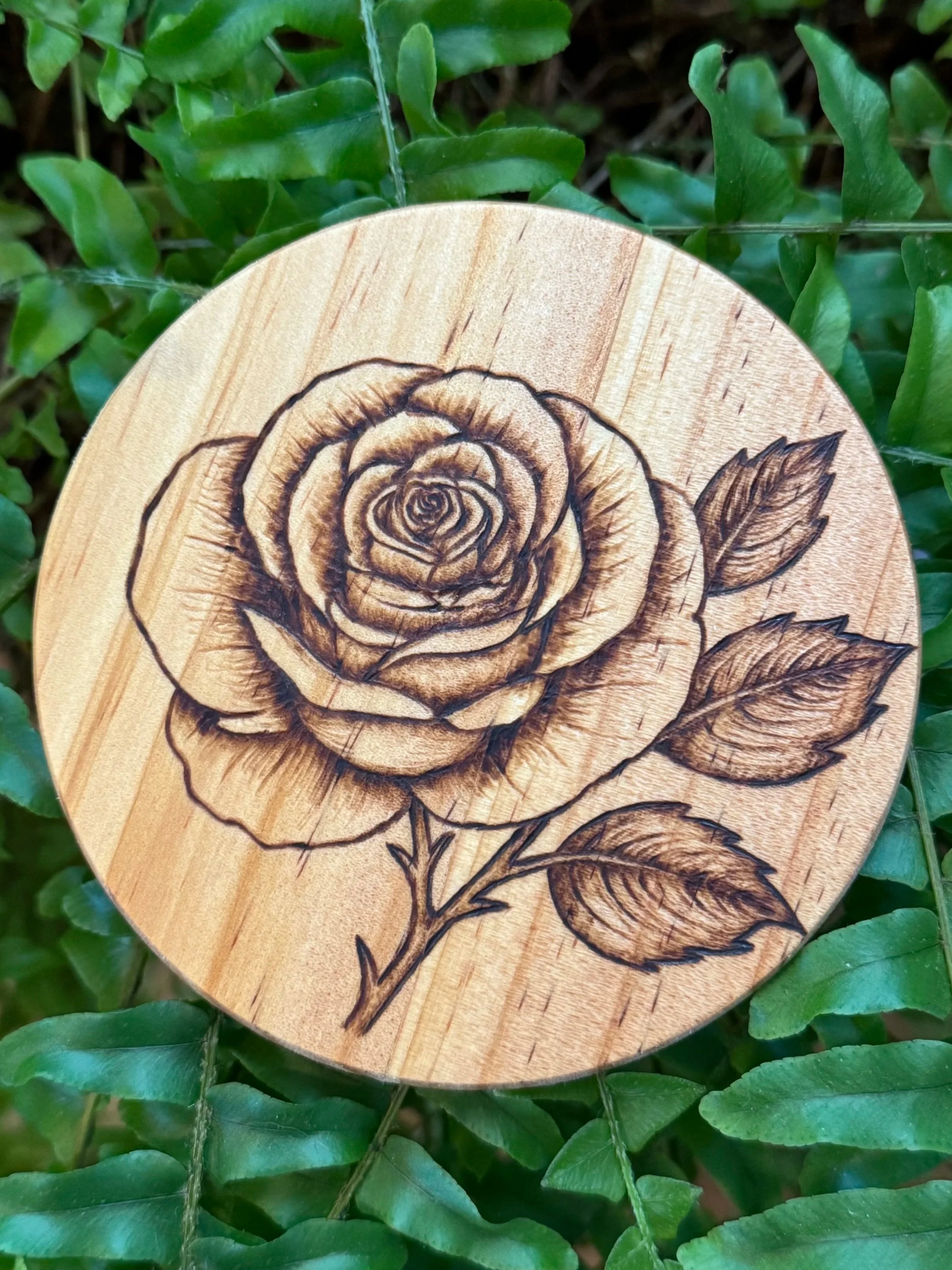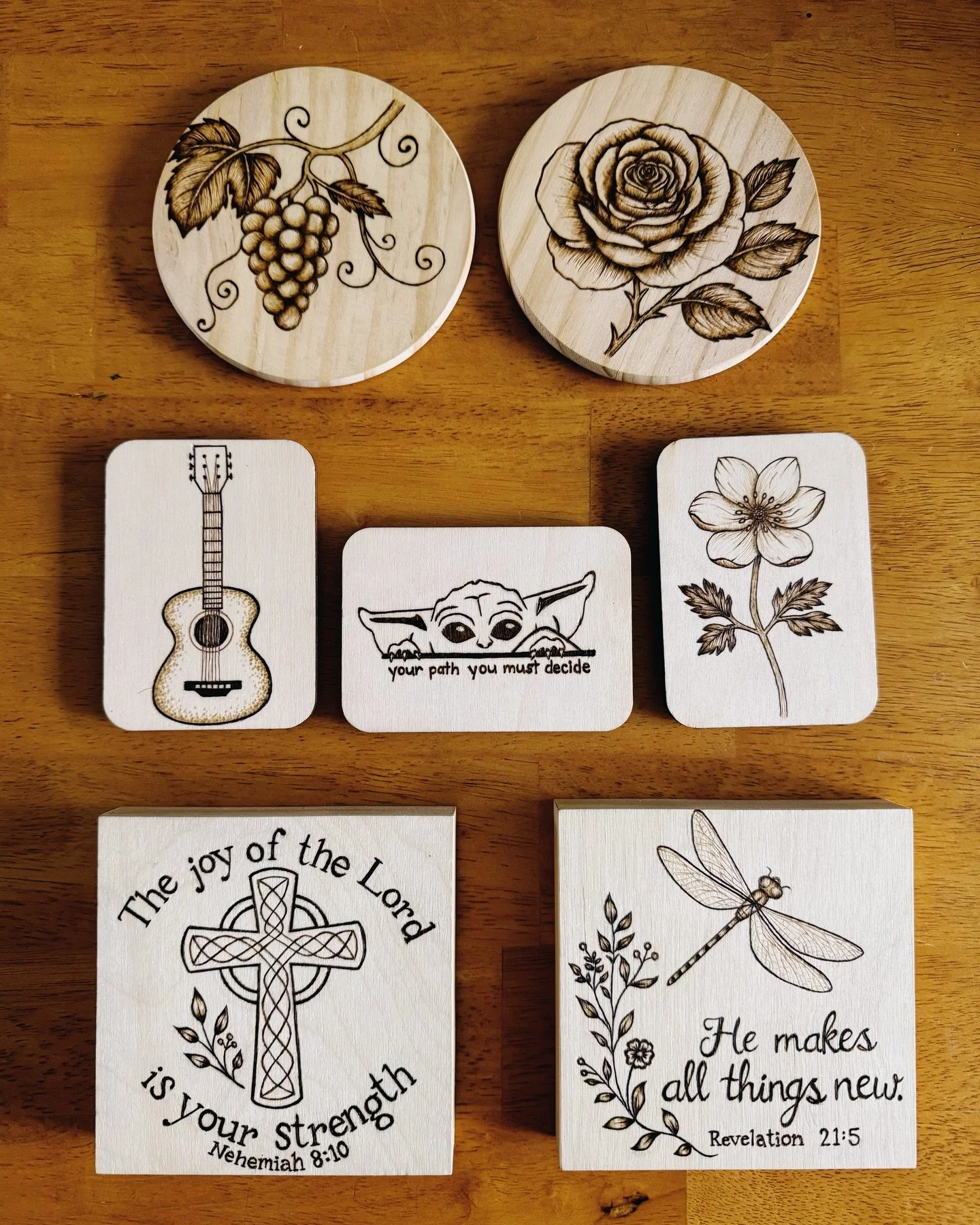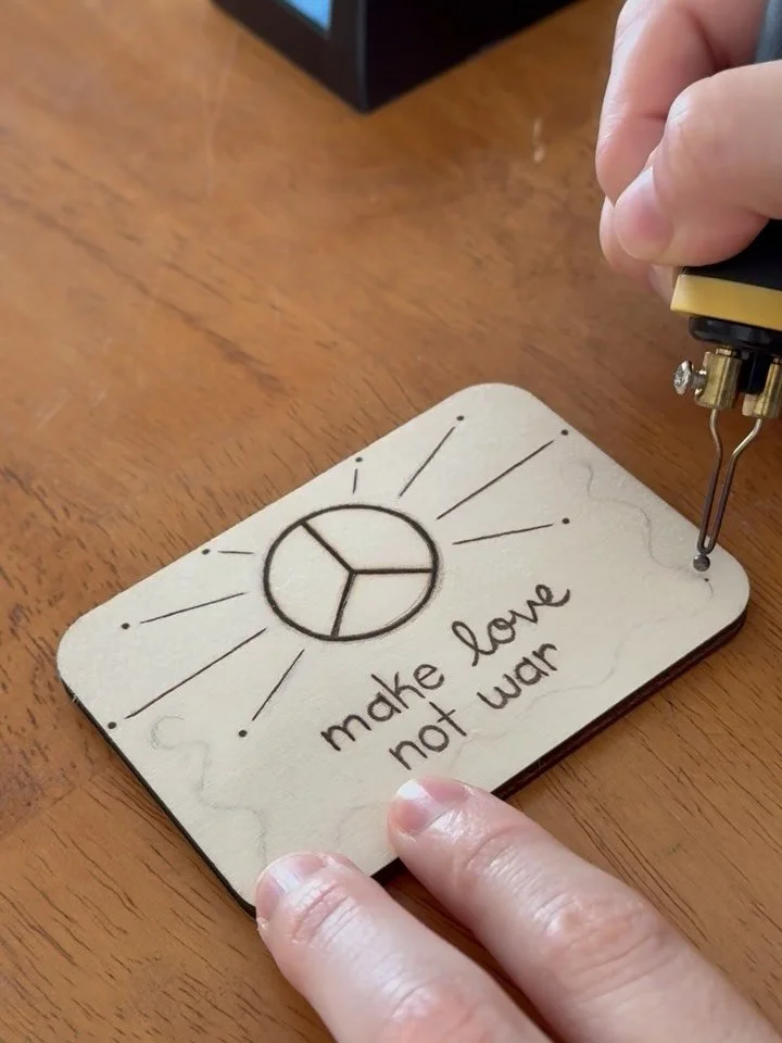 Drawn to processes that require patience and commitment, Cheyenne views burning into wood as both a physical and philosophical practice. Each line is permanent, shaped slowly by heat, pressure, and attention. The resulting pieces balance structure and organic variation, reflecting natural systems, human rhythm, and the quiet tension between order and imperfection.