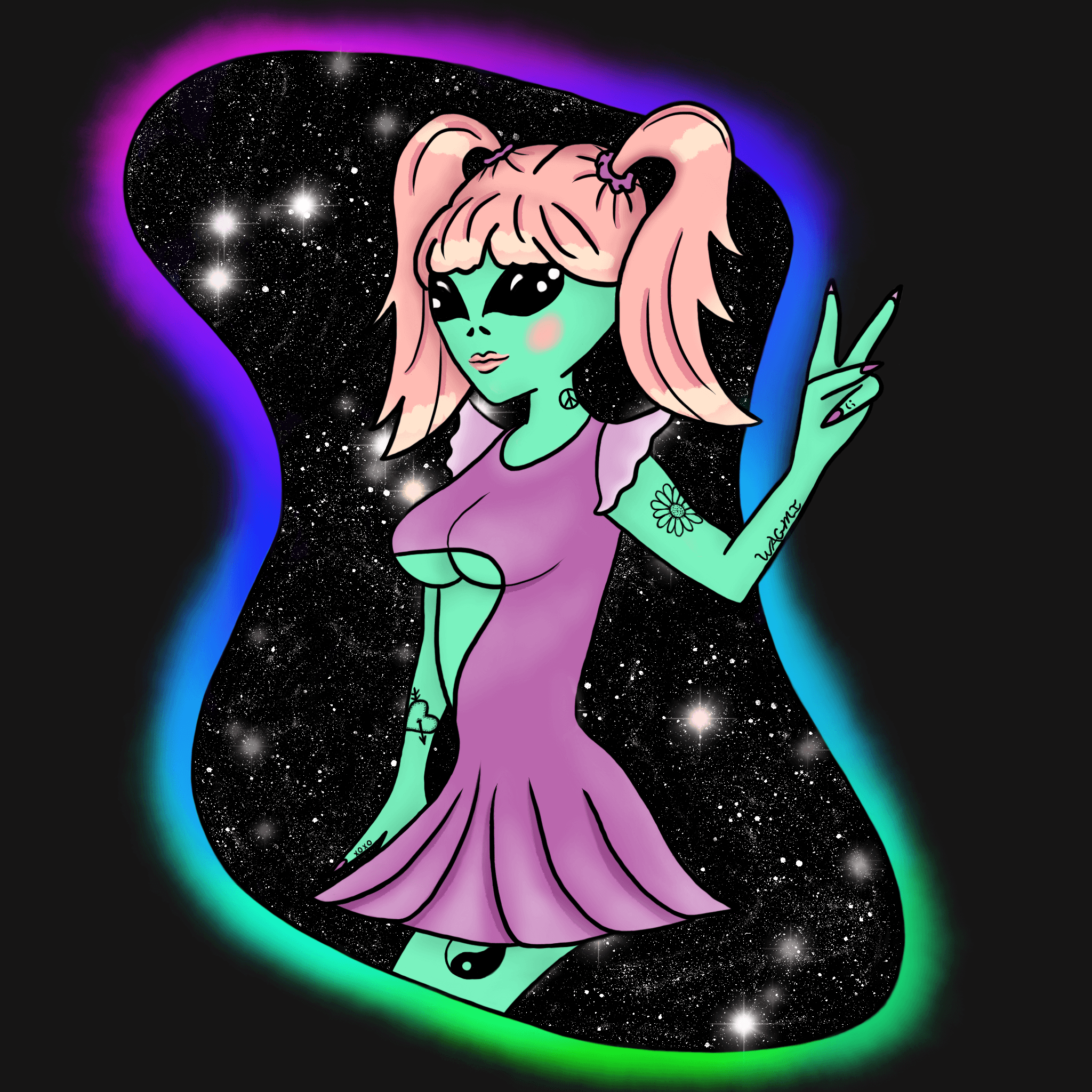 Wood Art Dreamscapes Just Visiting Animated Art Bitcoin Art Furniture MarsailiMae Space Girl B&W Pieces